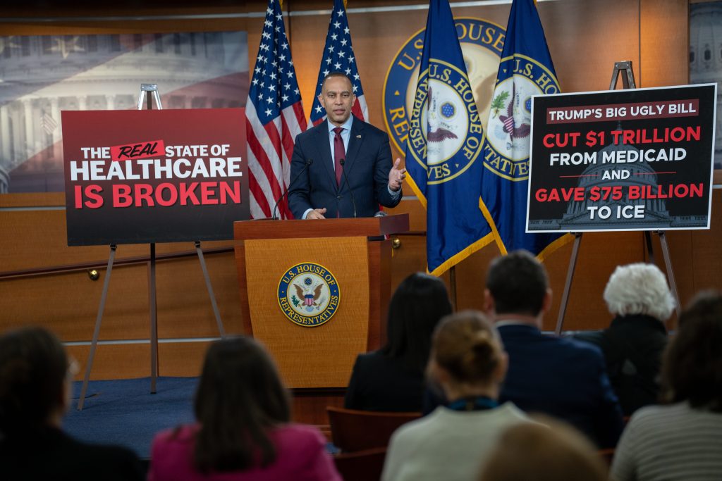 LEADER JEFFRIES: This is day five of the Trump-Republican shutdown of the Department of Homeland Security. Why are we in this moment? It’s because Republicans have decided that they would rather shut down FEMA, shut down TSA and shut down the Coast Guard than get ICE under control.