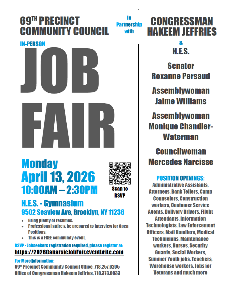 APRIL 4, 2023 – 69TH PRECINCT COMMUNITY COUNCIL JOB FAIR